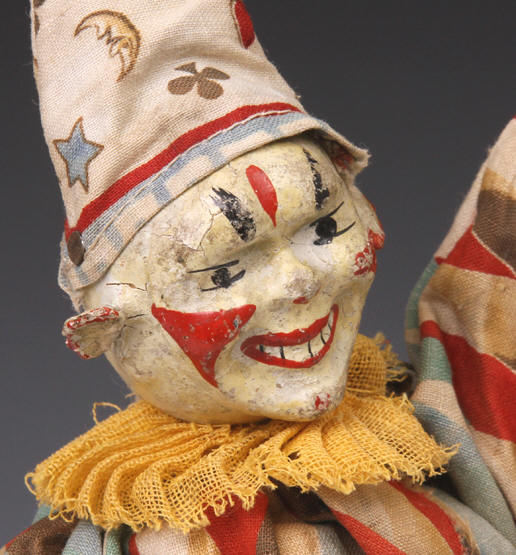 Clown - two-part-head in Harlequin suit. Suit is an early version