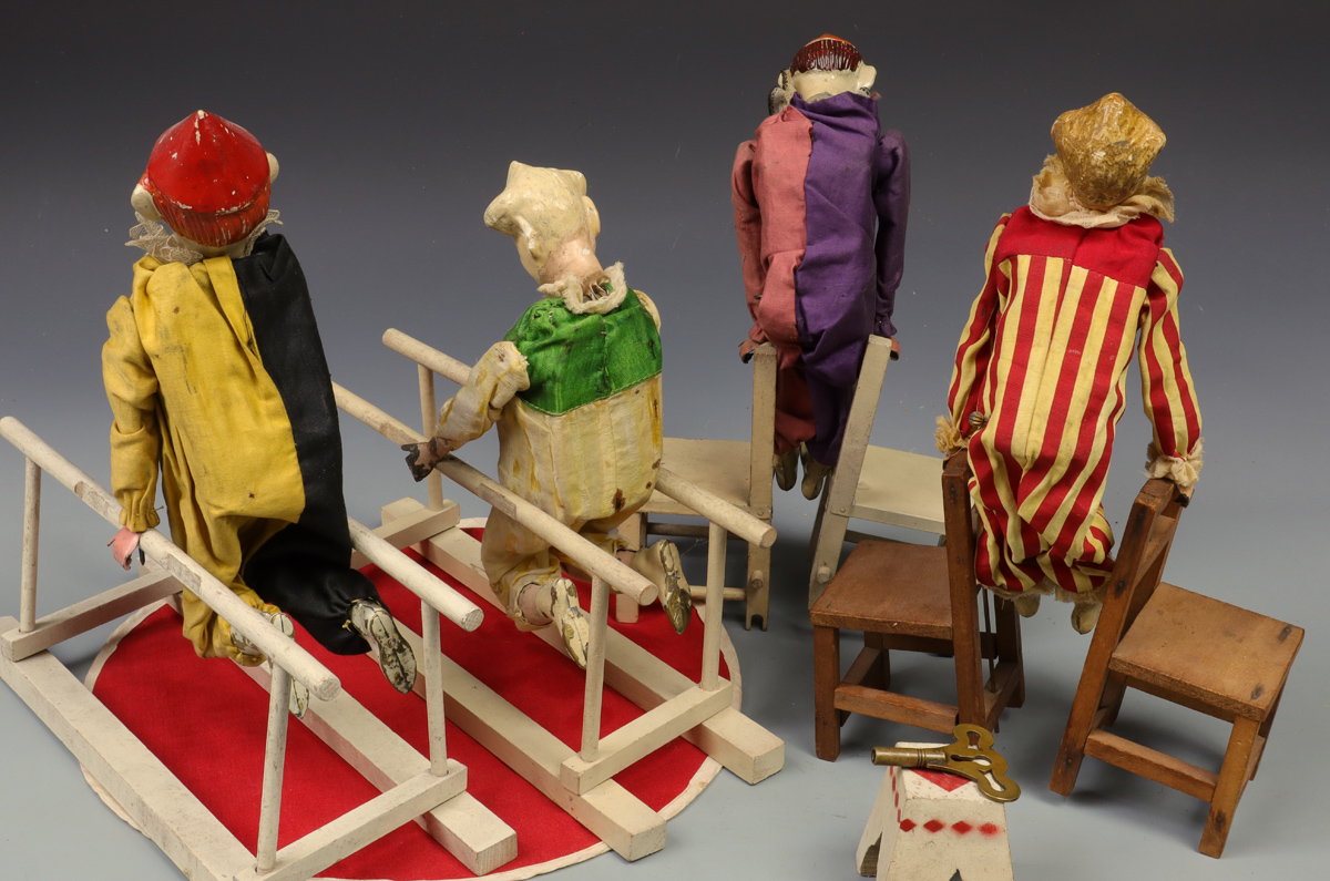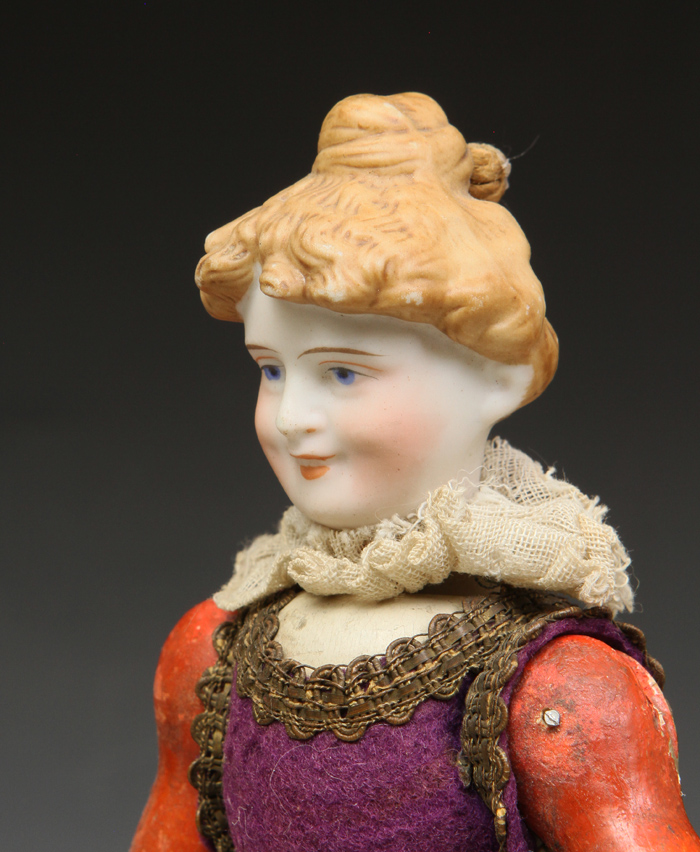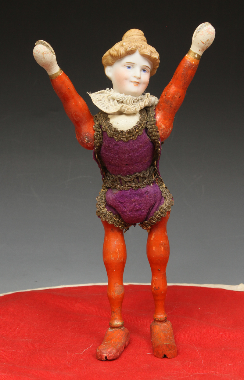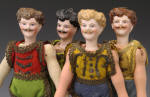 Colors of the Bisque Head Gent Acrobats - from left, Brown, Black, Blond,