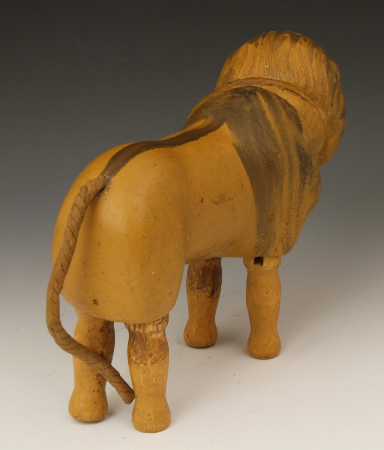 with wool tail (mostly missing) and small riveted stirrups. One stirrup