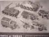 Army vehicles, including a later style tank.