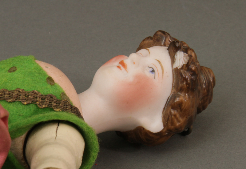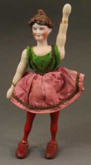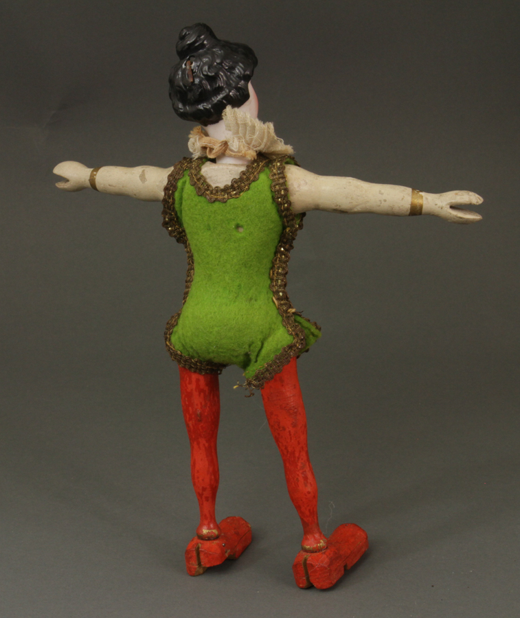 Bisque Head Lady Acrobat - complete and all original. Paint loss