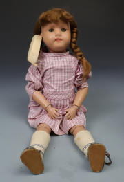 | TD19-N | She is about 21.5 inches tall. Mechanically sound. Sleep eyes work. Point of focus of the eyes are at about 12 inches away, I would guess. New wig and clothes. Face paint very good - I don't see obvious repaint anywhere. $190 Sold |