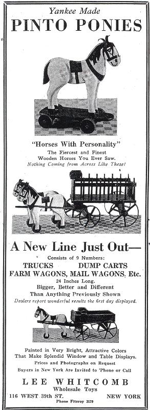 ![]() 1921 Advertisement Pinto Pony: $90 - $120 Horse and Wagon (top): $240 - $300 Horse and Wagon (bottom): $150 - $200 |