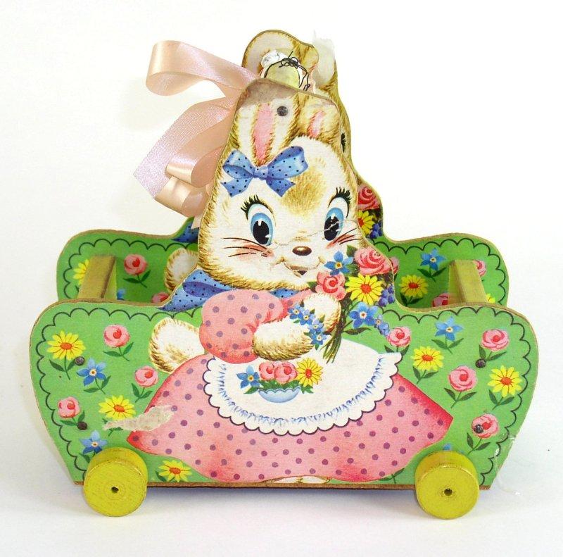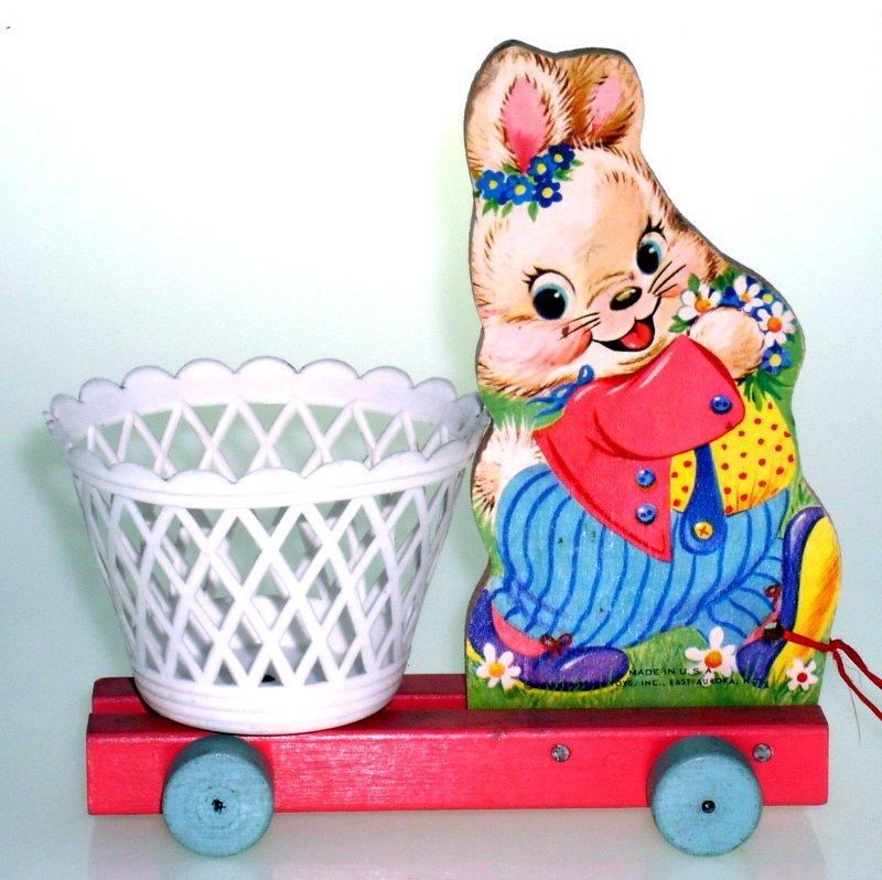 ![]() Rolling Bunny Basket #310 1961 7.5"L x 6.5"H x 4.5"W |