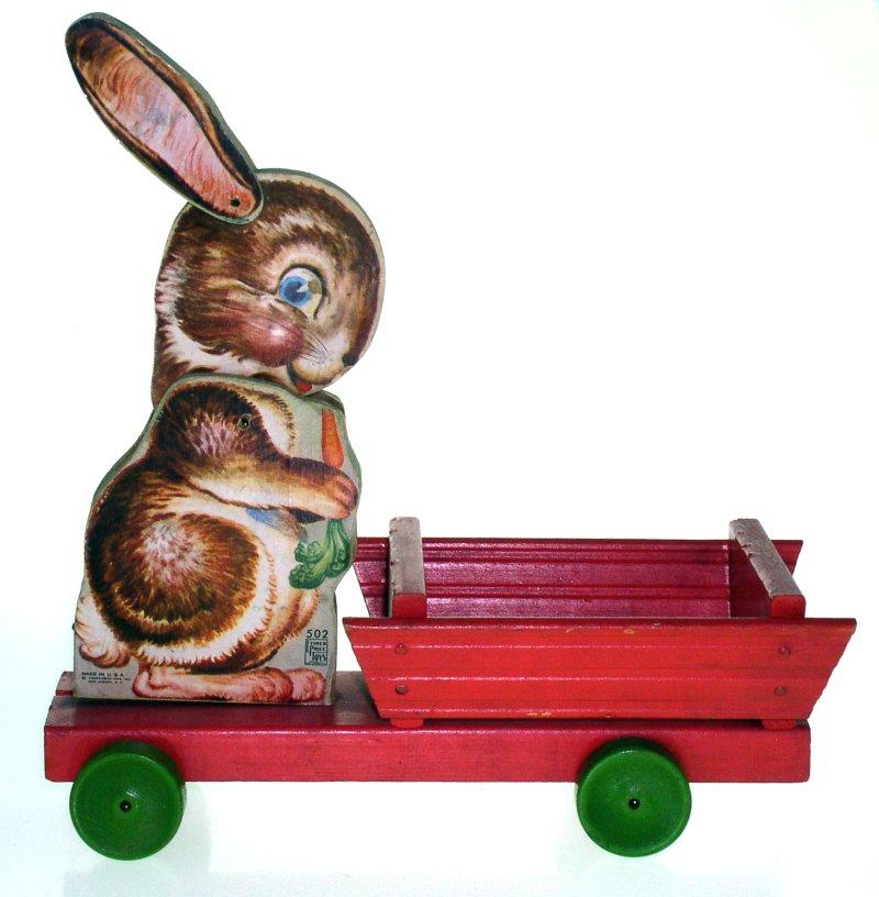![]() Bunny Cart #406 1950 9"L x 7.5"H x 4"W |