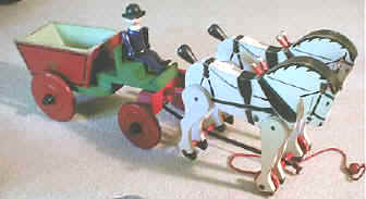 | Please contribute to this toy list. I am finding new items frequently. The list below is for those produced in Illinois. All are pull toys unless otherwise described. Value is my estimate of the likely EBAY selling price for excellent, complete samples. Click on the toy's name to see its illustration. | ||||||||||||||||||||||||