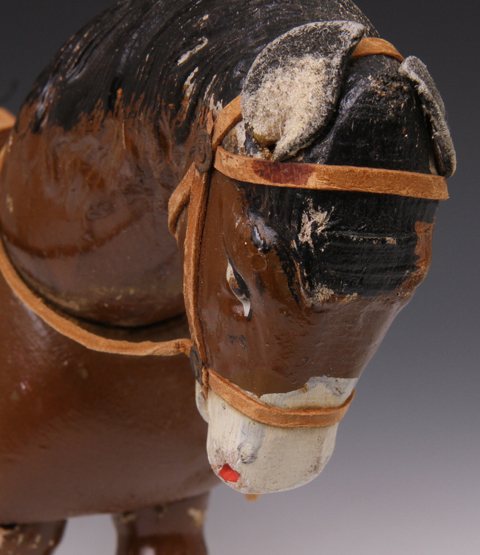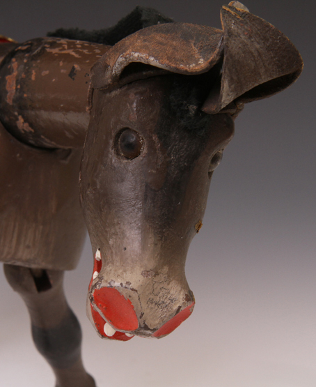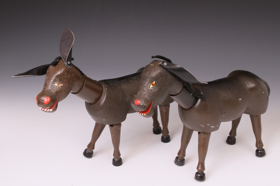 Schoenhut's reduced-size donkeys. Both in complete, excellent condition. ca