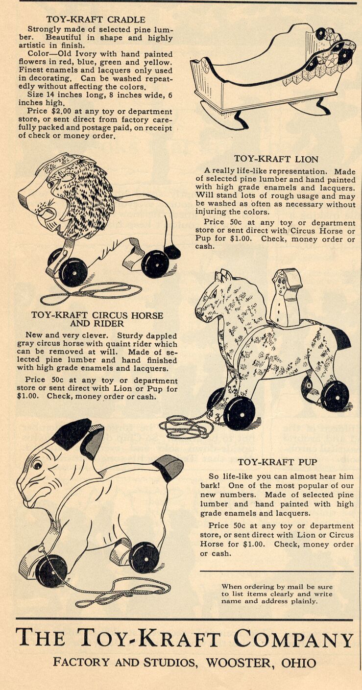 Here are some magazine ads from the 1920s for Toy Kraft Toys of